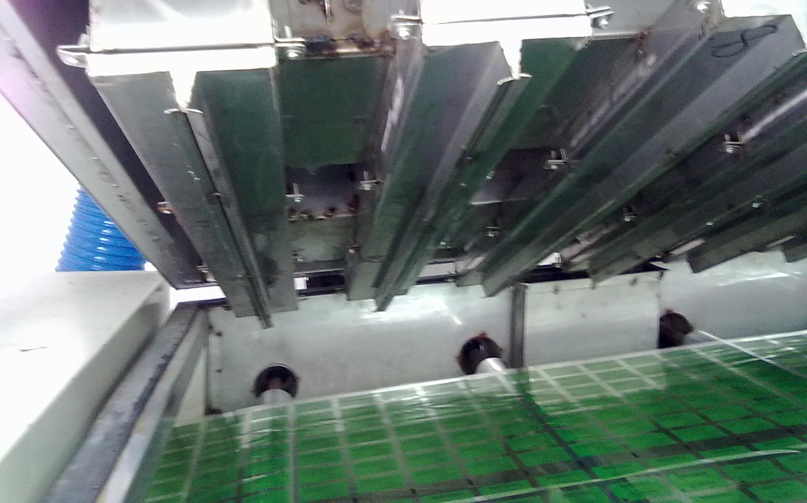 干法復合機干燥裝置,一般采用電加熱器,經烘箱(烘道)噴嘴,將熱空氣通過縫狀噴嘴以一定速度吹到已涂布膠黏劑的塑料