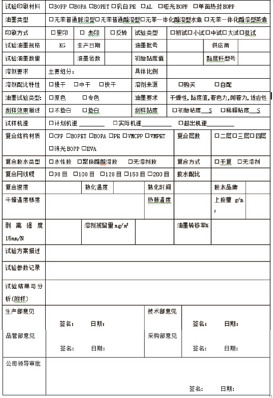表四:軟包裝企業(yè)油墨試樣申請單(如下表)