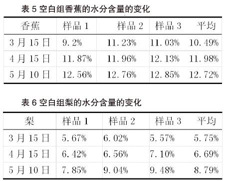 表4 生物調節膜包裝的梨/香蕉的水分含量的變化