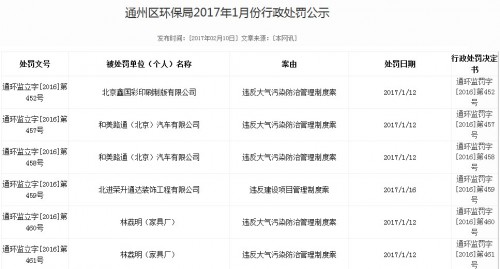 日前,北京市通州區(qū)環(huán)保局發(fā)布2017年1月行政處罰公示,北京鑫國(guó)彩印刷制版有限公司因環(huán)保違法,被罰1萬(wàn)元。