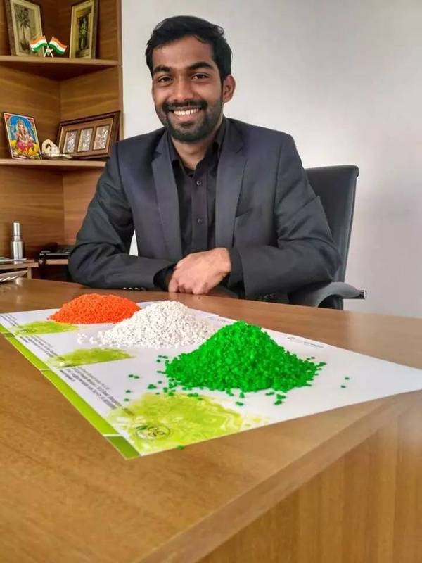 這位笑嘻嘻的小伙Ashwath Hedge,(同樣是來自印度的小哥)可不是為了嘩眾取眾,他的腦子也沒燒壞,就是這款塑料袋,讓他年僅24歲便創立EnviGreen公司,當起了CEO,眾多國家找上門來。