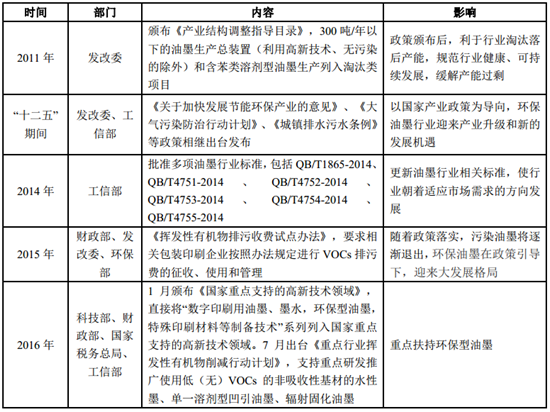 2009 年《食品安全法》和《食品容器、包裝材料用添加劑使用衛(wèi)生標(biāo)準(zhǔn)》正式開(kāi)始實(shí)施,對(duì)食品包裝材料和容器提出了明確要求,使用環(huán)保油墨成為環(huán)保印刷的必由之路。隨著《關(guān)于加快發(fā)展節(jié)能環(huán)保產(chǎn)業(yè)的意見(jiàn)》、《大氣污染防治行動(dòng)計(jì)劃》、《城鎮(zhèn)排水污水條例》等政策相繼出臺(tái)發(fā)布,我國(guó)包裝油墨環(huán)保要求不斷提高,以國(guó)家產(chǎn)業(yè)政策為導(dǎo)向,油墨行業(yè)迎來(lái)產(chǎn)業(yè)升級(jí)和新的發(fā)展機(jī)遇,環(huán)保型油墨必將成為行業(yè)發(fā)展的主流項(xiàng)目,開(kāi)發(fā)和引進(jìn)環(huán)保型油墨的先進(jìn)技術(shù)是國(guó)內(nèi)油墨行業(yè)的發(fā)展趨勢(shì)。