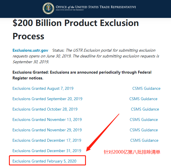 針對2000億第8批關(guān)稅豁免通知及清單 ▲美國貿(mào)易代表辦公室公告 公告及涉及產(chǎn)品下載地址:https://ustr.gov/sites/default/files/enforcement/301Investigations/%24200_Billion_Exclusions_Granted_January_31.pdf ▲第19批2000億排除清單部分截圖
