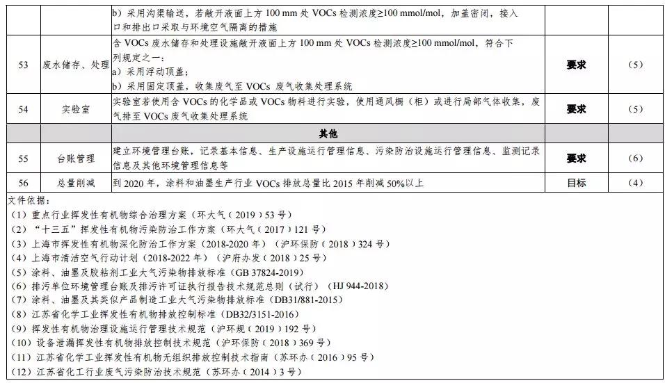 此次治理工作以源頭防治、無組織減排和末端有效運行為重點,結(jié)合上海實際,制定形成分行業(yè)VOCs綜合治理任務(wù)對照表,做到所有重點行業(yè)“一行一表”,所有涉及企業(yè)“照表施治”,嚴(yán)格按照時間節(jié)點要求逐條落實VOCs治理任務(wù),大大提升了治理工作的效率。以下是涂料油墨膠黏劑行業(yè)VOCs 治理任務(wù)對照表。