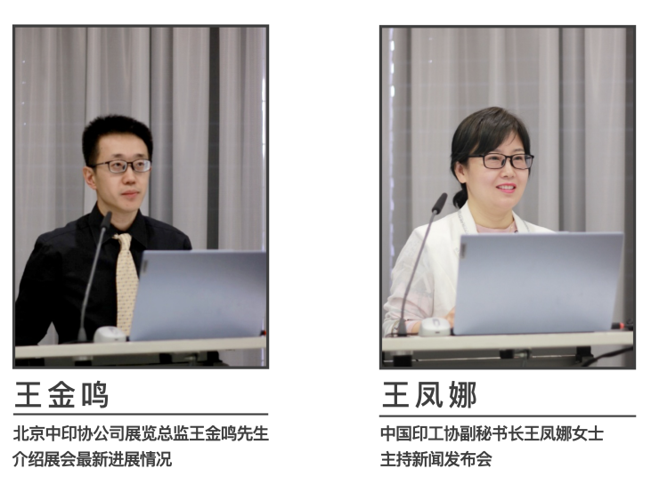 本次新聞發(fā)布會(huì)由中國(guó)印刷及設(shè)備器材工業(yè)協(xié)會(huì)(以下簡(jiǎn)稱(chēng)中國(guó)印工協(xié))副秘書(shū)長(zhǎng)王鳳娜女士主持。中國(guó)印工協(xié)副理事長(zhǎng)楊斌先生、北京中印協(xié)華港國(guó)際展覽有限公司(以下簡(jiǎn)稱(chēng)北京中印協(xié)華港)董事總經(jīng)理李嘉羊先生分別致辭,北京中印協(xié)華港展覽總監(jiān)王金鳴先生詳細(xì)介紹了CHINA PRINT 2025目前的籌備情況。