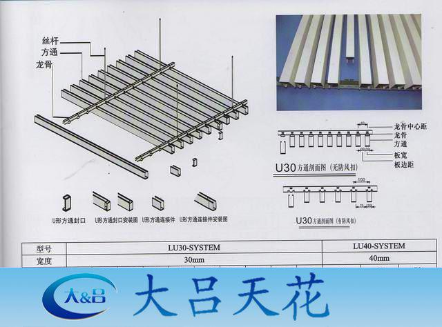 鋁方通(U型方通、U型槽、木紋方通、木紋管)是近幾年來主要的吊頂材料之一,鋁方通天花是一種裝飾性垂簾型吊頂天花,線條明快飄逸,整體通透,祥和,色澤豐富。選用適當的高度,以適當視覺角度,能產生幕布效果,使得設計變化萬千,效果美觀。其線條明快整齊,層次分明,體現了簡約明了的現代風格,安裝拆卸簡單方便,成為近幾年風靡裝飾市場的主要產品。產品設計獨特、款式新穎、質輕抗震、耐腐蝕耐風化、綠色環保,是金屬裝飾材料的首選。