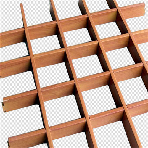 熱轉印仿木紋鋁格柵的配件有M8吊桿,主龍骨吊桿、主龍骨、格柵主骨、格柵吊桿、格柵柵骨。 四支鋁格柵組成的方格,它們的常用規格為200*200、150*150、125*125、110*110、100*100、50*50。